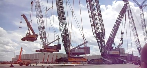 Buna rağmen aşağıdaki videoda spiker, LR13000’in 1521 ton kaldırabildiğini söylüyor. Nedenini ise tahmin etmek zor değil. Gösterideki düzeneğin 12 metreden daha uzun bir alanda kurulmuş olduğunu farkettiniz sanırım. Görüntüdeki diğer tüm vinçlerin toplam ağırlığı kabaca 1.430 tona eşit ve bu yüzden LR13000’in şu anda sadece %94 kapasiteyle çalıştığını söylemek mümkün.
